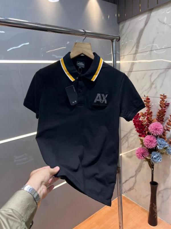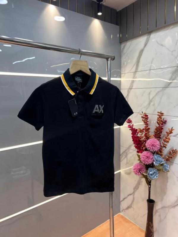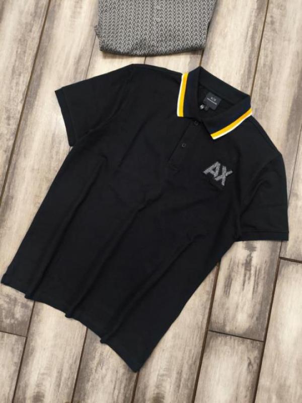 Home T-Shirts Arman i Exchange Black Premium Cotton Lycra Pique fabric Polo Tshirt with Collar and Emboss Logo 3164