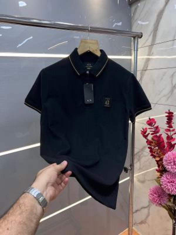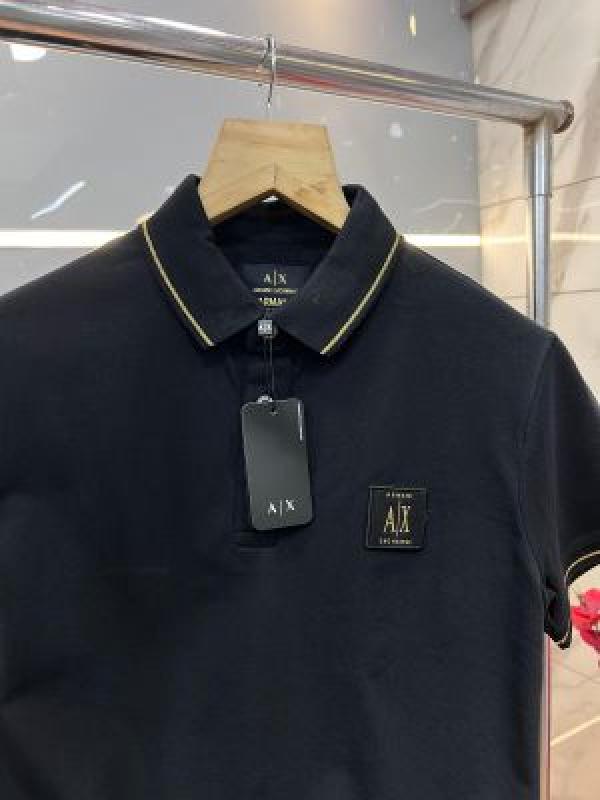 Home T-Shirts Arman i Exchange Black Premium Imported 240 GSM Interlock Cotton Lycra Fabric Polo T Shirt with Patch Logo 716