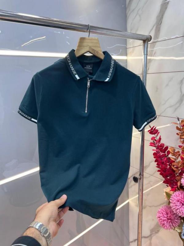 Home T-Shirts Arman i Exchange Green Premium Cotton Lycra Pique fabric Polo Tshirt with Collar and Sleeves Design Zip Style 3114