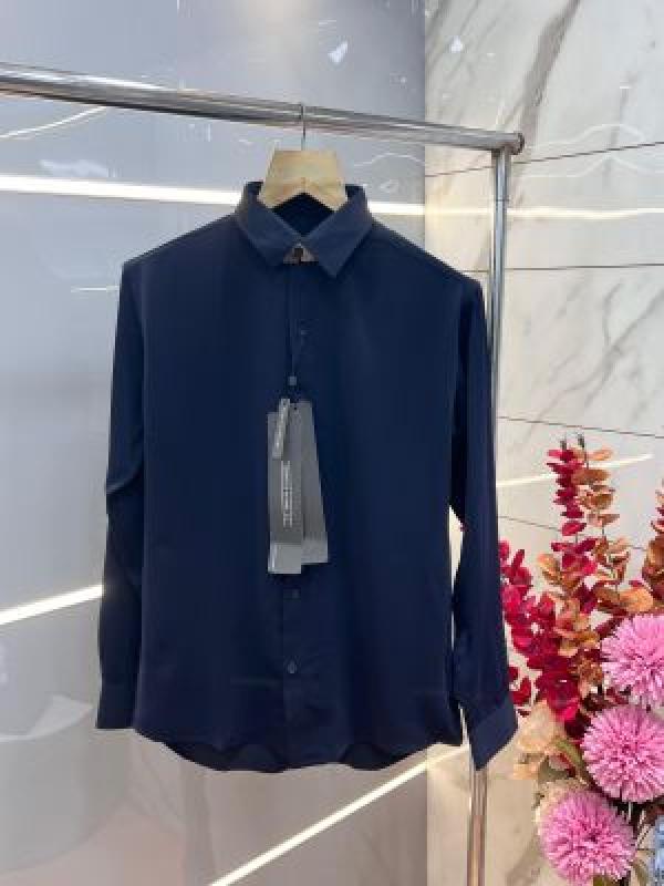 Burberr y Black Premium Imported Cotton twill fabric Embroidered Logo Shirt with custom Branded Button Tagging And Brand Packing 3255