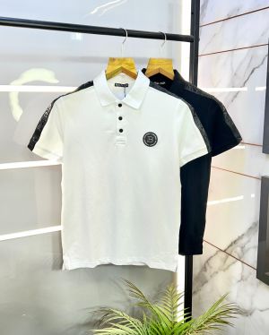 Balmai n Paris Metal Logo Imported Embossed Print White Collar Neck T-shirt F2832-WH
