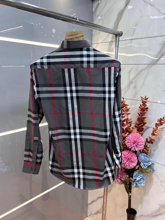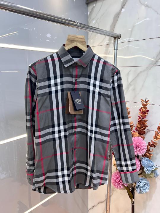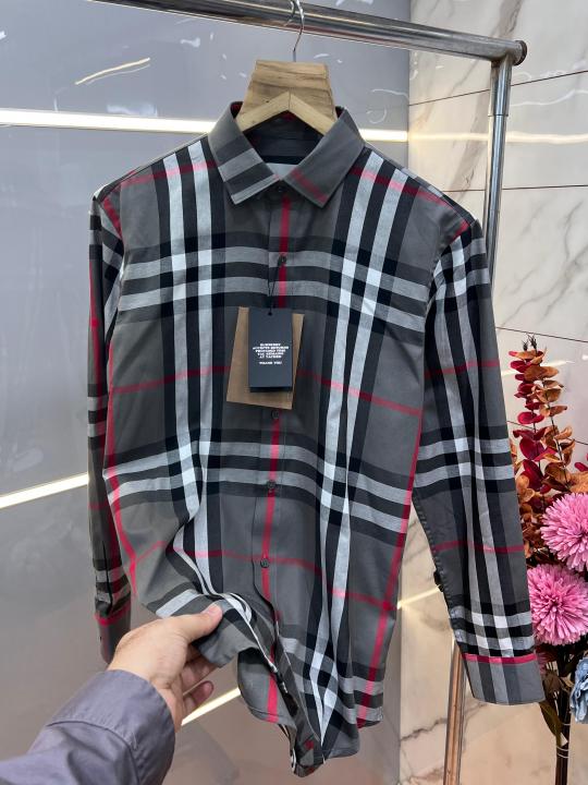 Home Shirts Burberr y Grey Premium Checks 100% Giza Cotton Fabric Shirt With custom Branded Button Tagging And Brand Packing 3333
