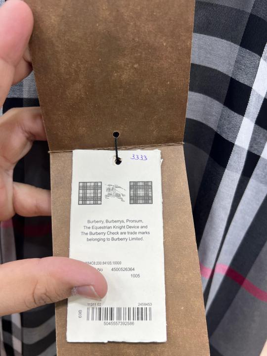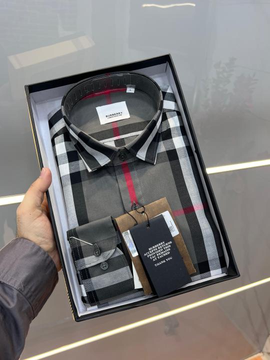 Burberr y Grey Premium Checks 100% Giza Cotton Fabric Shirt With custom Branded Button Tagging And Brand Packing 3333