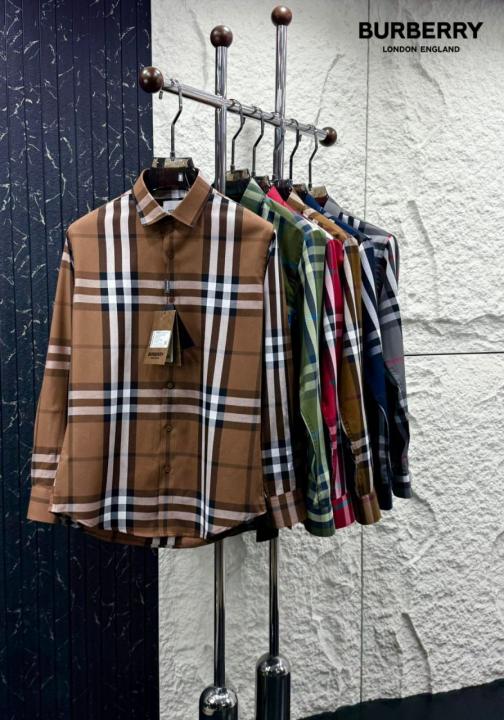 Burberr y Brown Black Line Premium mium Checks 100% Giza Cotton Fabric Shirt With custom Branded Button Tagging And Brand Packing 3329