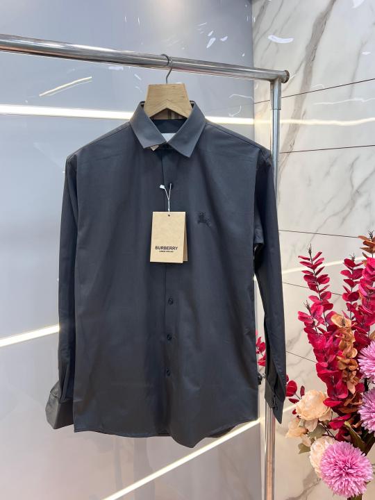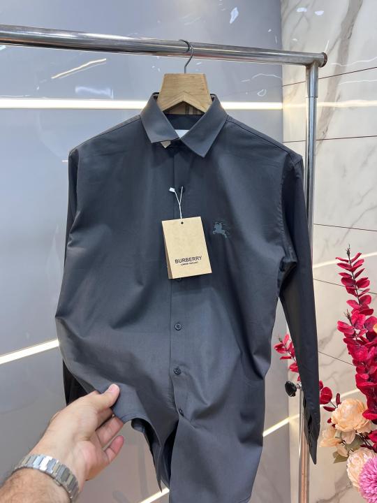 Home Shirts Burberr y Grey Premium Embroidered Logo Cotton Lycra Fabric Shirt With custom Branded Button Tagging And Brand Packing 3410