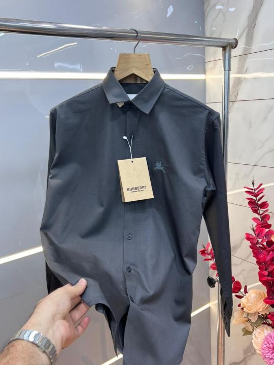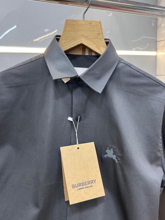 Burberr y Grey Premium Embroidered Logo Cotton Lycra Fabric Shirt With custom Branded Button Tagging And Brand Packing 3410