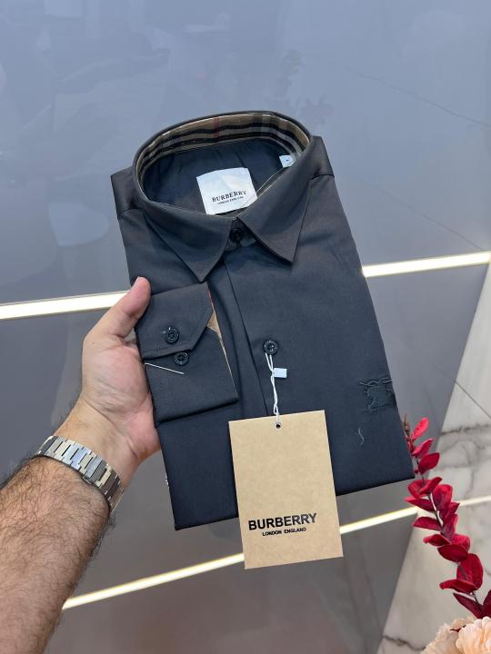 Burberr y Black Premium Embroidered Logo Cotton Lycra Fabric Shirt With custom Branded Button Tagging And Brand Packing 3414