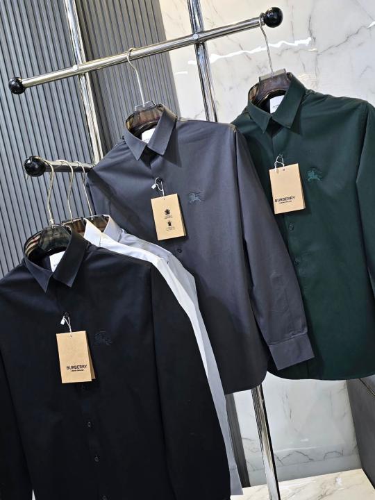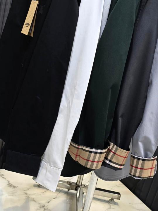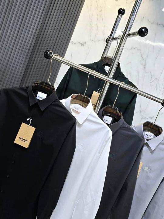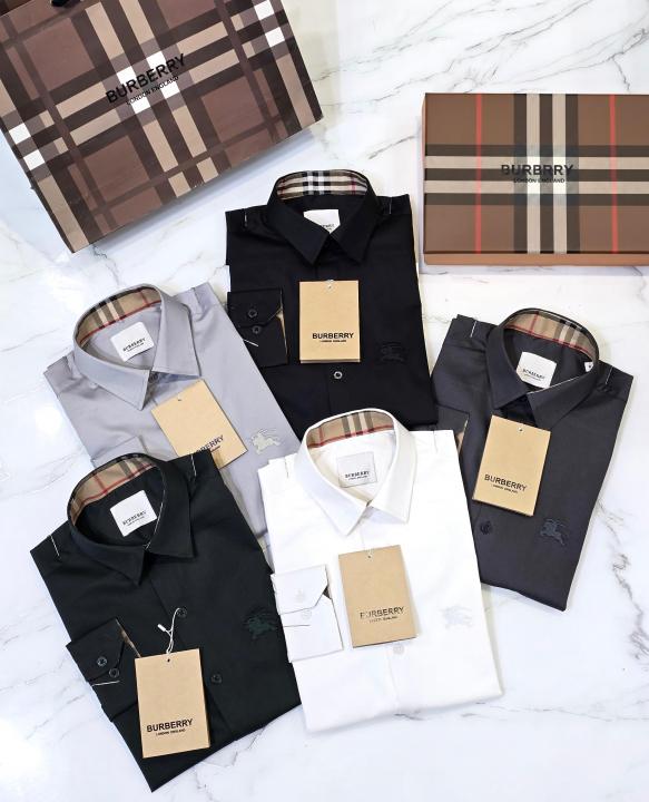 Burberr y Black Premium Embroidered Logo Cotton Lycra Fabric Shirt With custom Branded Button Tagging And Brand Packing 3414