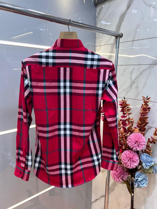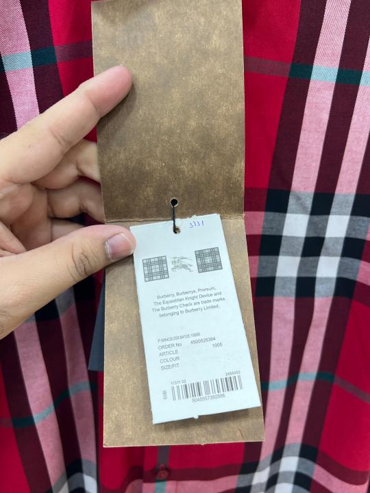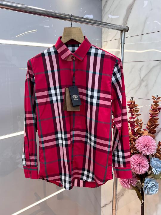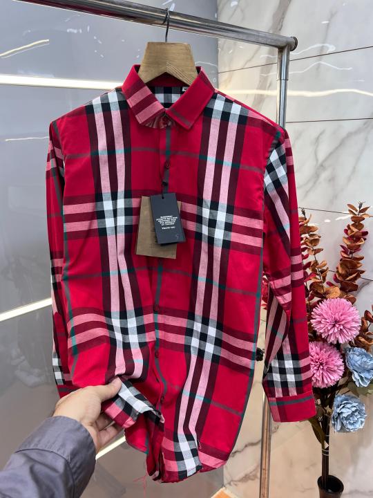Burberr y Red Premium Checks 100% Giza Cotton Fabric Shirt With custom Branded Button Tagging And Brand Packing 3331