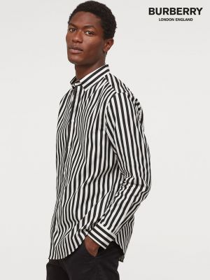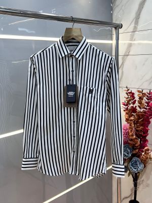 Burberr y Black Premium Imported Cotton twill fabric Embroidered Logo Shirt with custom Branded Button Tagging And Brand Packing 3255