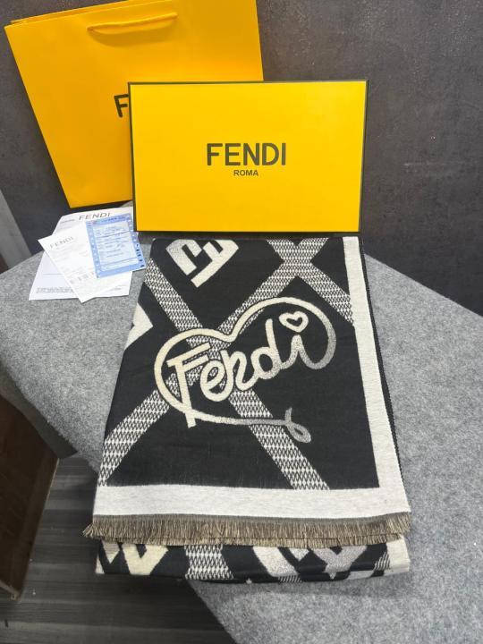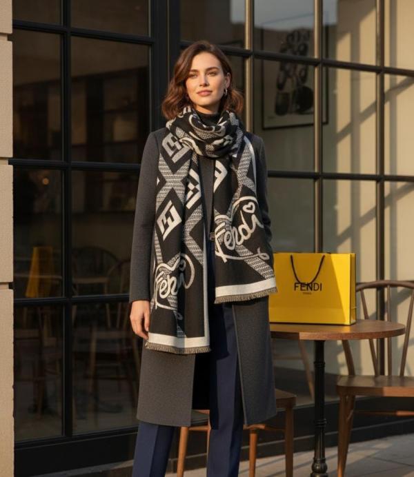 Fendi_FF_Logo_Wool_Shawl_Scarf_Soft_Black_&_Grey_Heart_Pattern_With_OG_Box_&_Carry_Bag