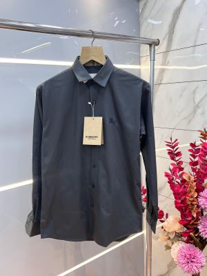 Burberr y Grey Premium Embroidered Logo Cotton Lycra Fabric Shirt With custom Branded Button Tagging And Brand Packing 3410