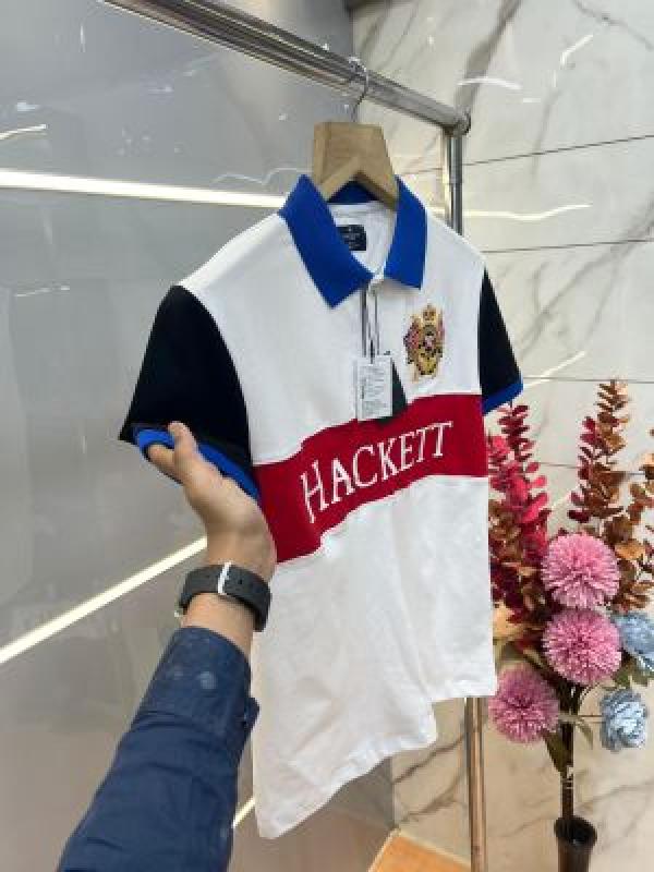 Hacket White Premium Imported Compact Yarn 240 GSM Interlock Fabric Polo Tshirt with Front Design and Embroidered Logo 3700