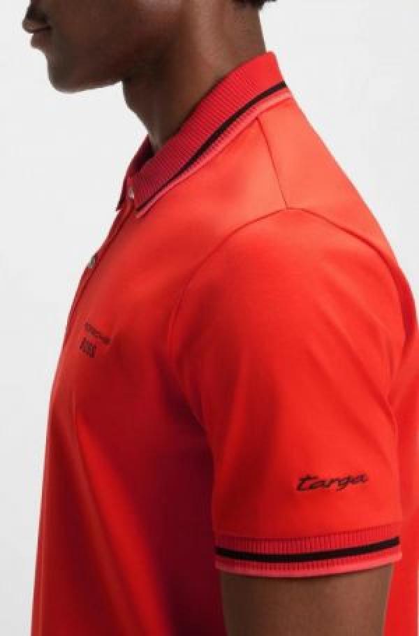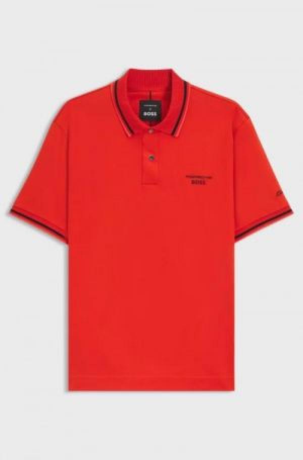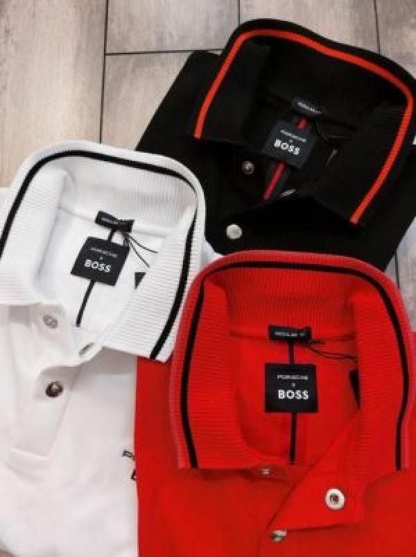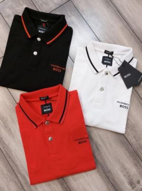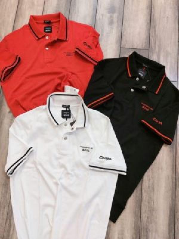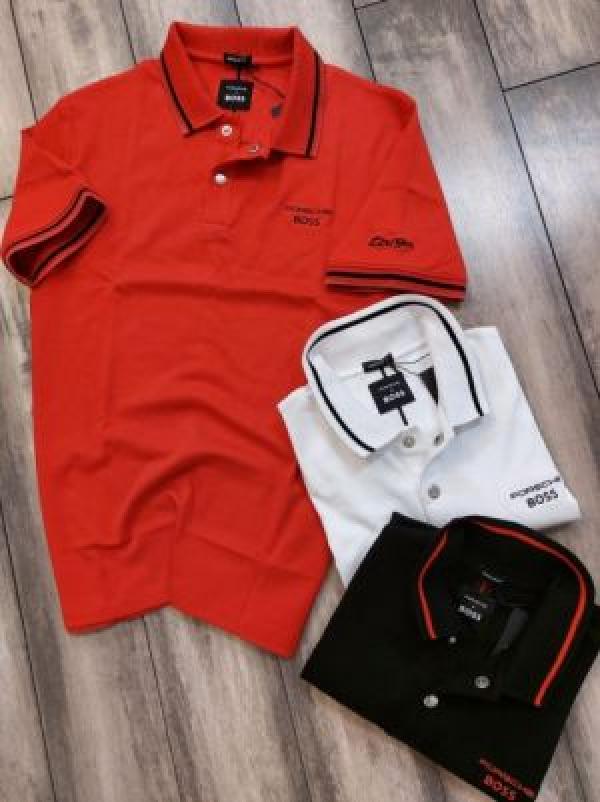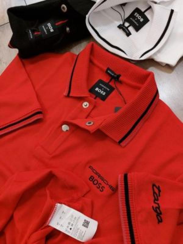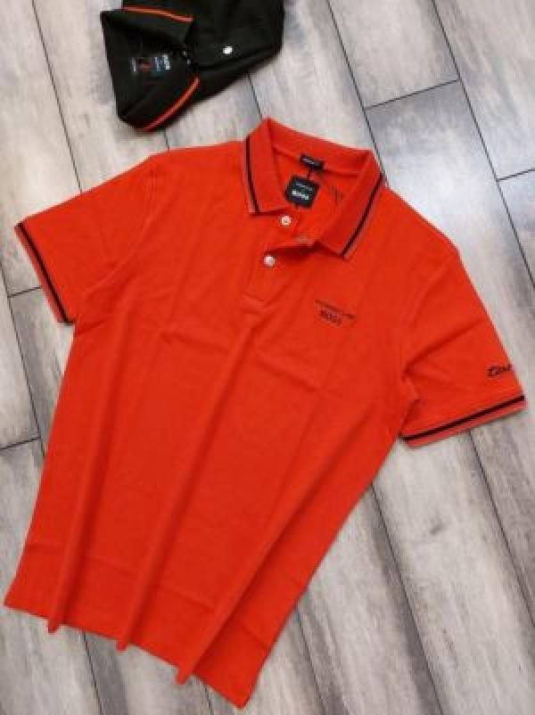 Hugo Bos s Red Premium Polo TShirt with 240 gsm interlock cotton lycra fabric with Collar Design and Embroidery Logo 2621