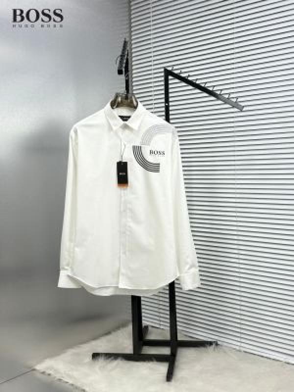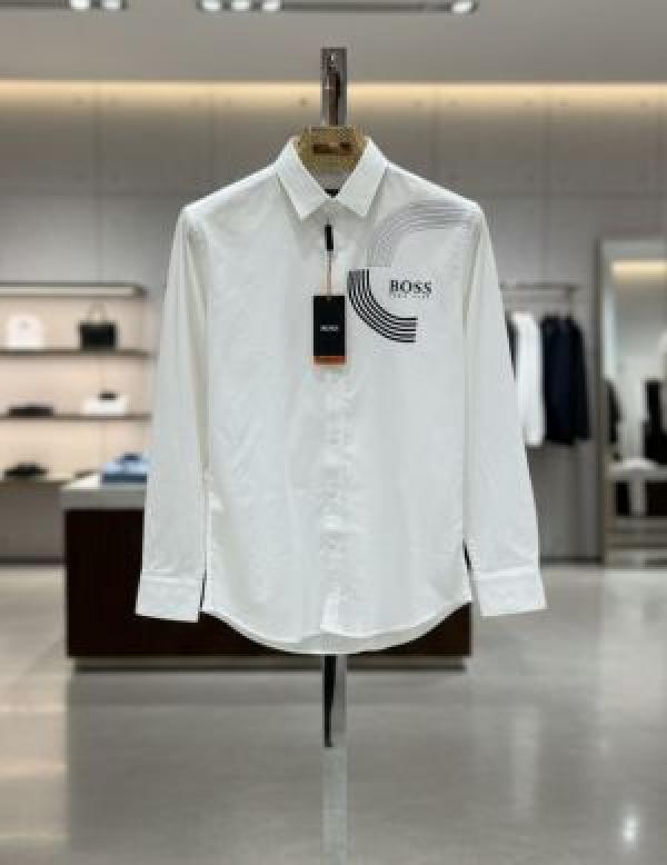 Home Shirts Hugo_Boss_White_Logo_Print_Premium_Shirt_(1879)