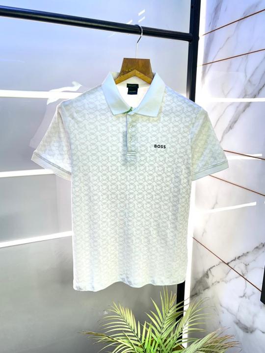 Home T-Shirts Hugo_Boss White Premium Collar Neck Polo T-shirt F3094-WH