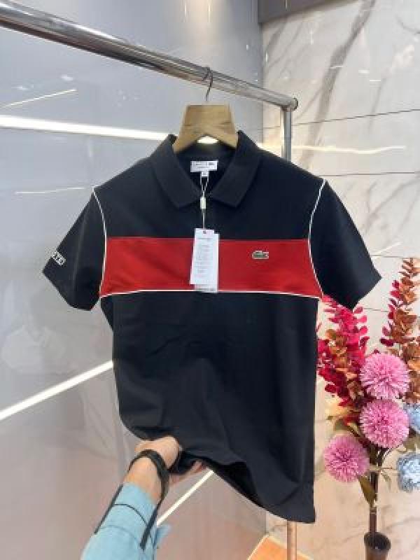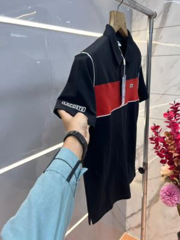 Lacost e Black Premium Cotton Pique fabric Polo Tshirt with Front Design and Embroidered Logo 3653