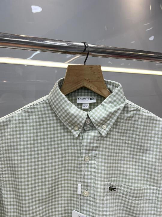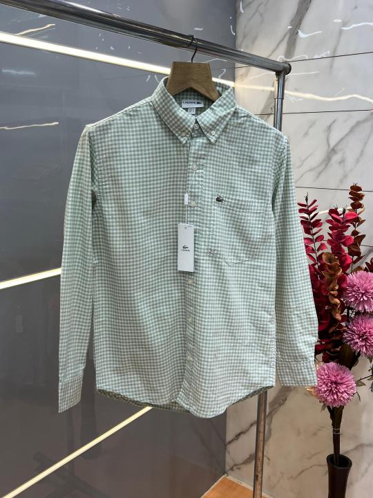 Home Shirts Lacost e C Green Premium Shirt 100% Oxford Cotton Fabric With custom Branded Button Tagging And Brand Poly Bag 3832