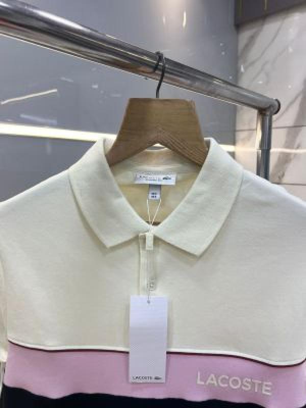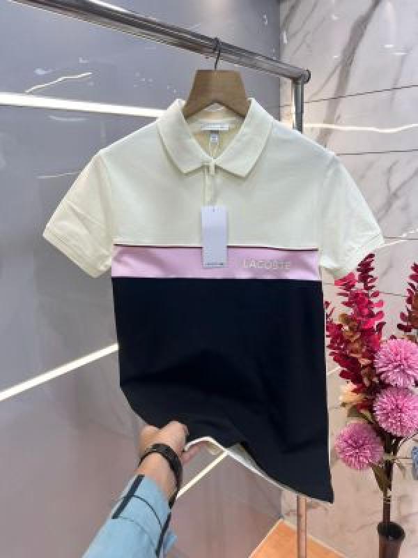 Lacost e Cream Premium Cotton Pique fabric Polo Tshirt with Front Design and Embroidered Logo 3651