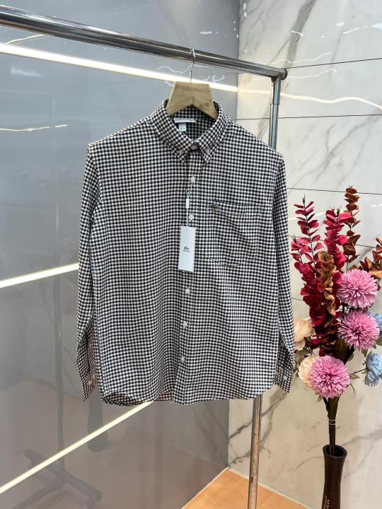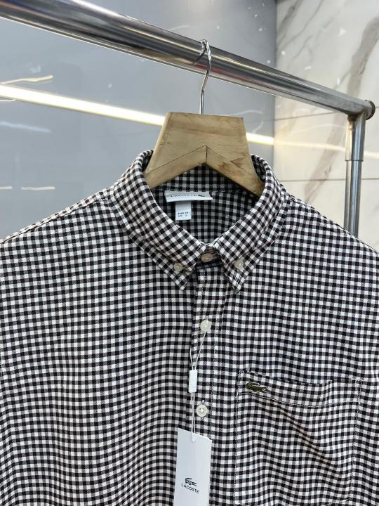Home Shirts Lacost e D Coffee Premium Shirt 100% Oxford Cotton Fabric With custom Branded Button Tagging And Brand Poly Bag 3829