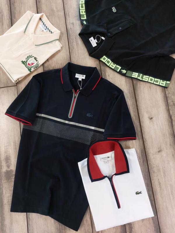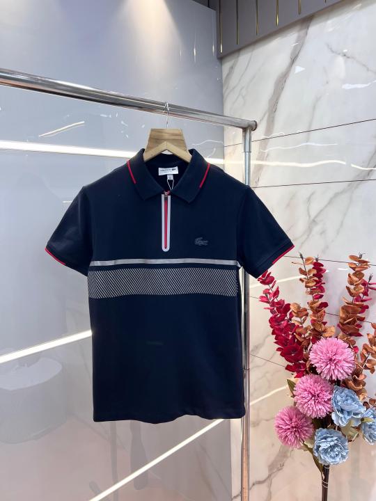 Home T-Shirts Lacost e Navy Premium Cotton Pique fabric Polo Tshirt with Collar Design and Embroidered Logo Zip Style 3108