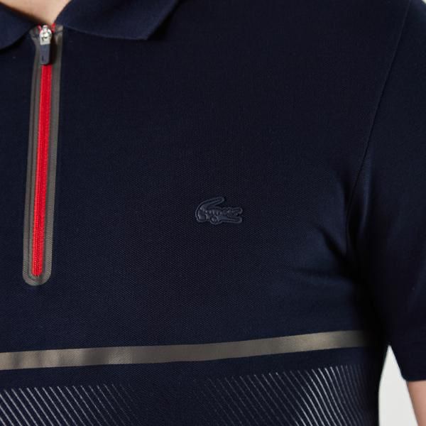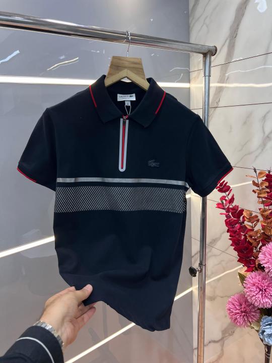 Lacost e Navy Premium Cotton Pique fabric Polo Tshirt with Collar Design and Embroidered Logo Zip Style 3108