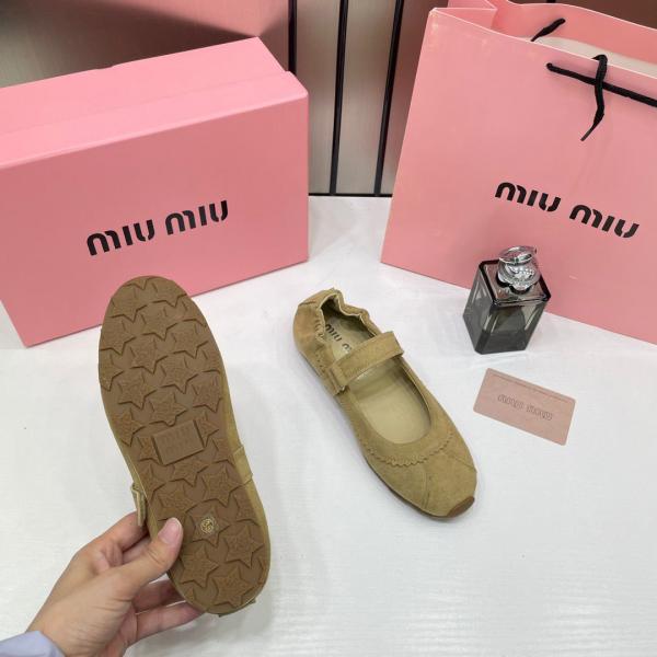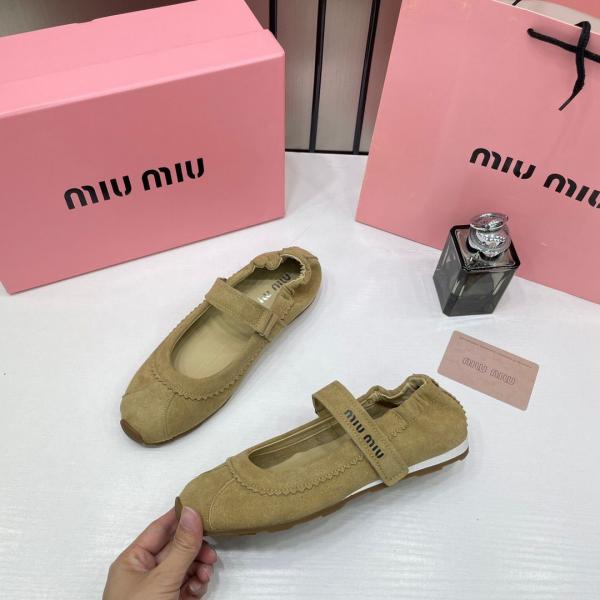 Miu Miu Camel Ballet Flats Leather Elastic Scrunch With OG Box & Carry Bag 2129