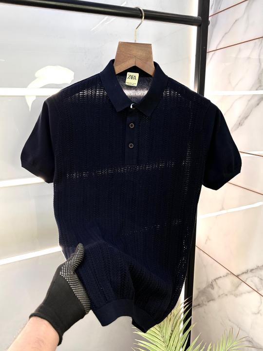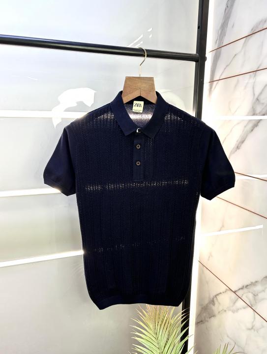 Sale Zar a Navy Premium Collar Neck T-shirt NAVY-M-1922