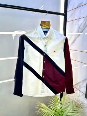 Tommy_Hilfiger White Oxford Lycra Premium Printed Shirts F2715-WH