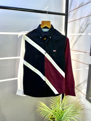 Tommy_Hilfiger Black Oxford Lycra Premium Printed Shirts F2715-BL