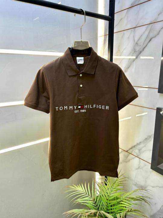 Home T-Shirts Tommy_Hilfiger Brown Polo Premium Collar Neck T-shirt F2630-BR