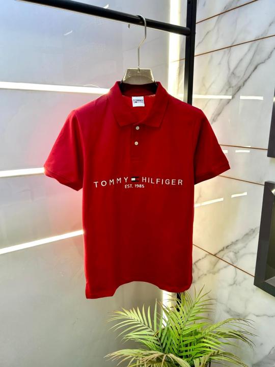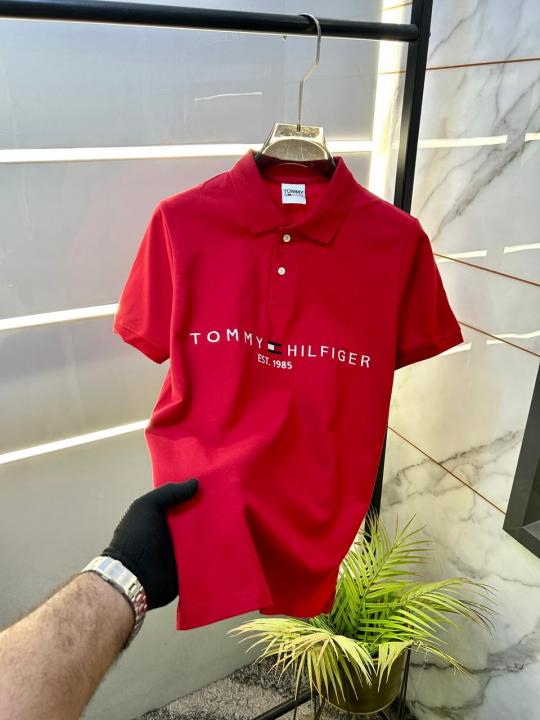 Home T-Shirts Tommy_Hilfiger Red Polo Premium Collar Neck T-shirt F2630-RE
